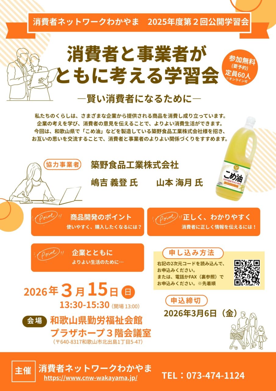 【参加費無料:公開学習会】消費者と事業者がともに考える-賢い消費者になるために-